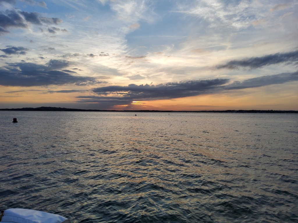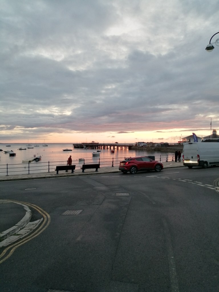 Morning came with wind whistling in the rigging, an overcast sky, and a few spots of rain. If I had gone aground during the night, I certainly hadn’t felt it. The sound of the wind in the rigging was annoying me and if I were to stay here again tonight, it would only be worse. So I moved on. This time Pottery Pier west of Brownsea island. I arrived at about 11.00am and there was lots of space to anchor. As the day wore on, more boats arrived, mainly day trippers in small to medium motorboats. Lots of families with kids whizzing about in dinghies or swimming. Come the evening and the party boats arrived, loud music and laughter accompanied another nice sunset.