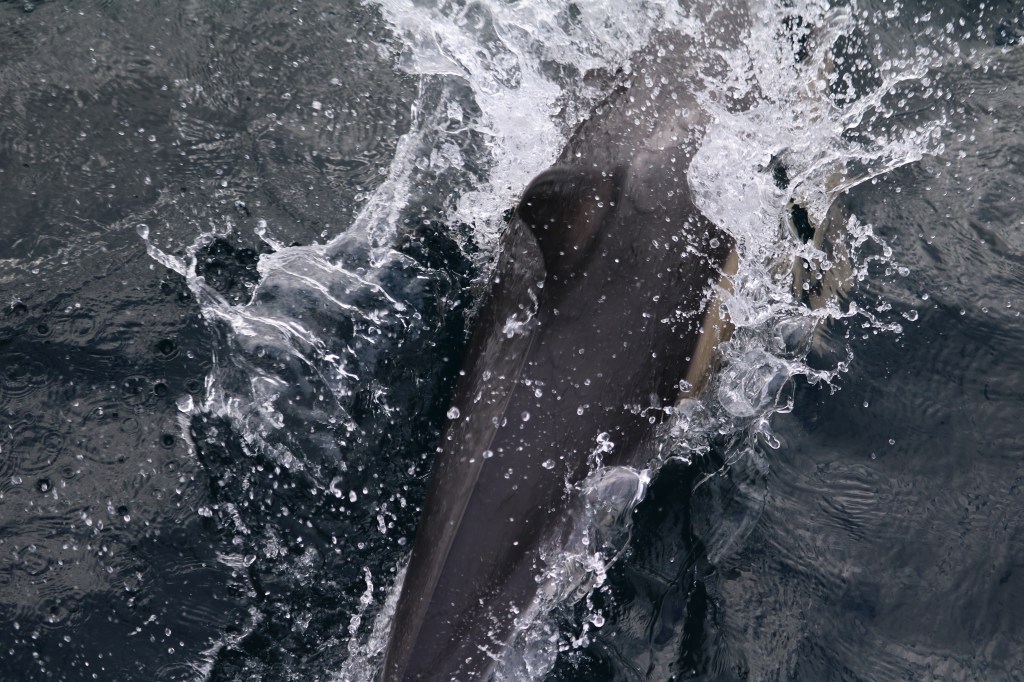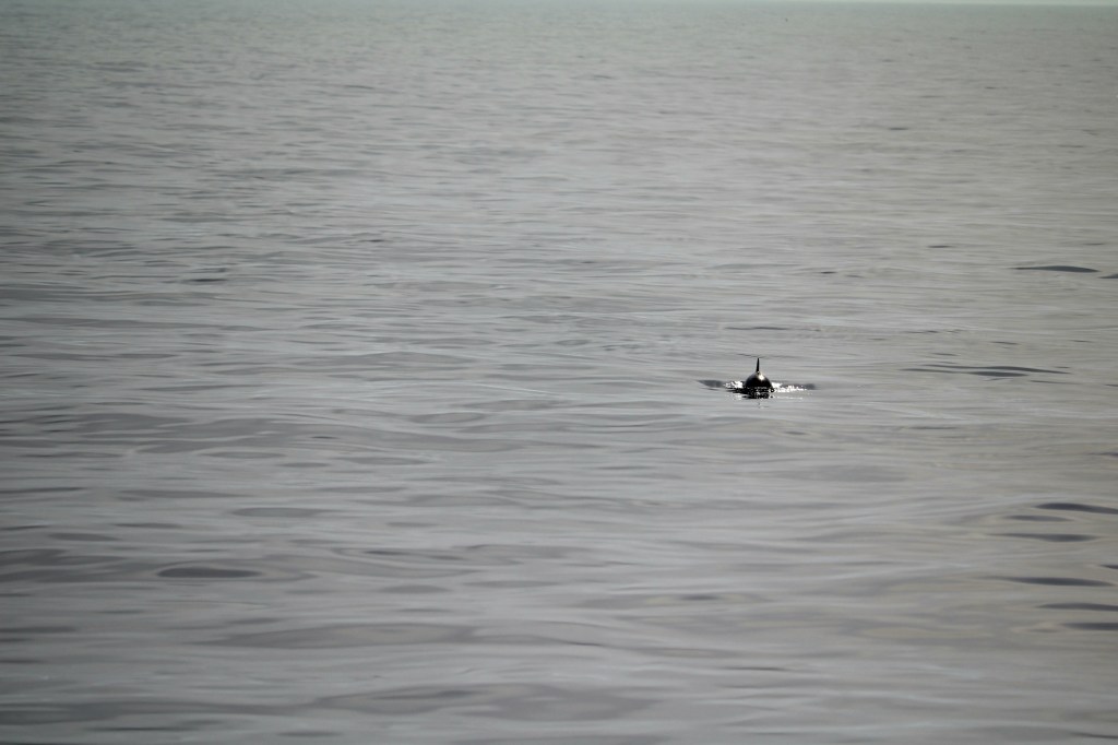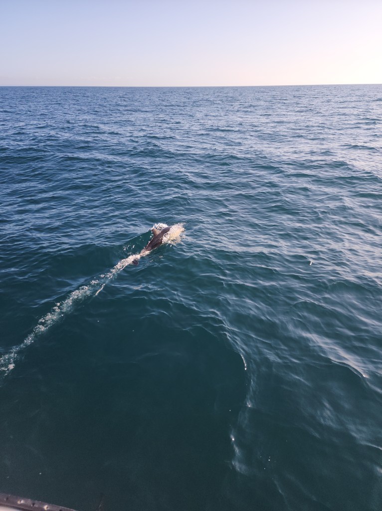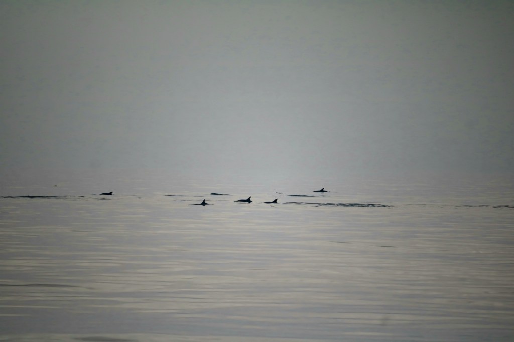 When the sea is flat, dolphins are easy to spot, and there were quite a few around, but were too busy feeding to come and play!