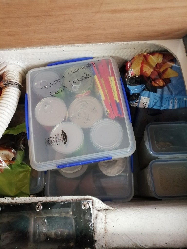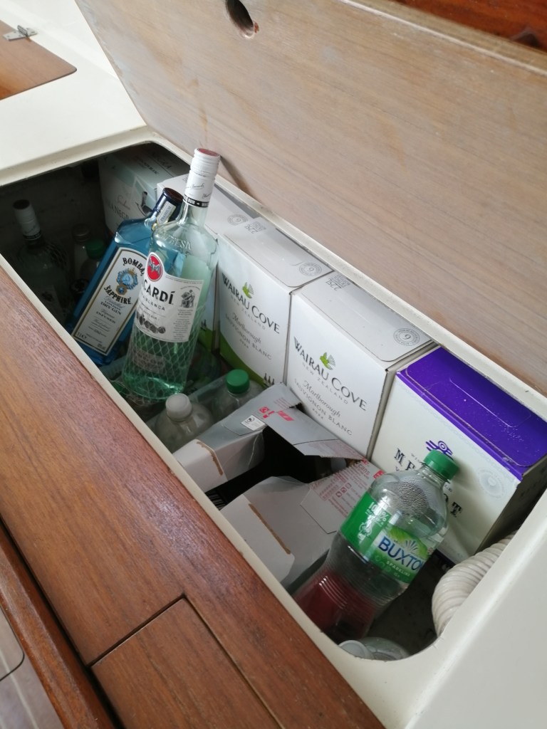 The boat is ready, the fridge and food cupboard are full. The drinks cupboard is stocked.