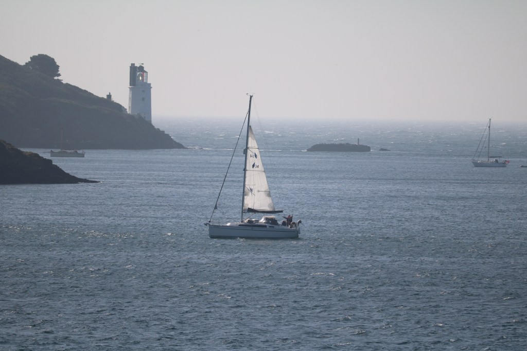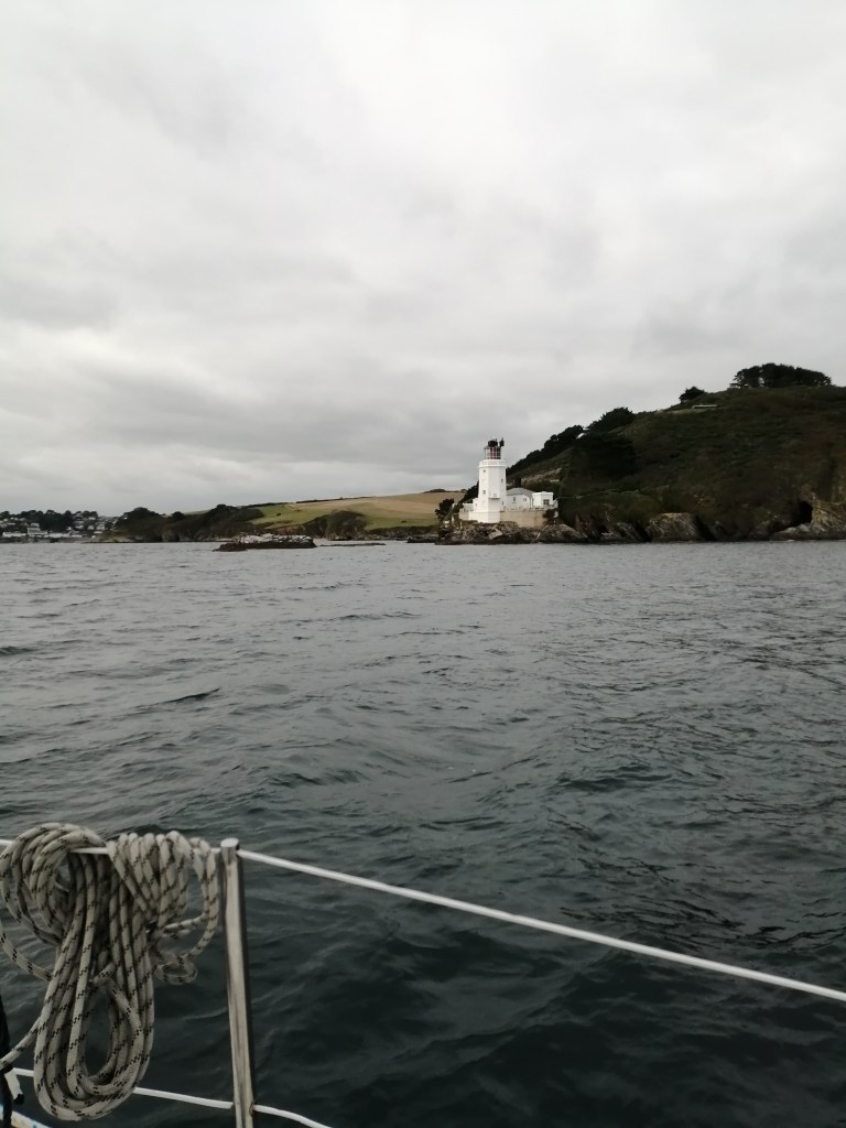 We had anchored 4 miles up the estuary so it was getting on for a hour before we passed between Pendennis and St Mawes Castles and rounded St Anthony lighthouse into open sea,