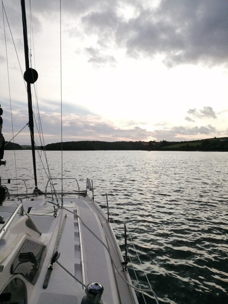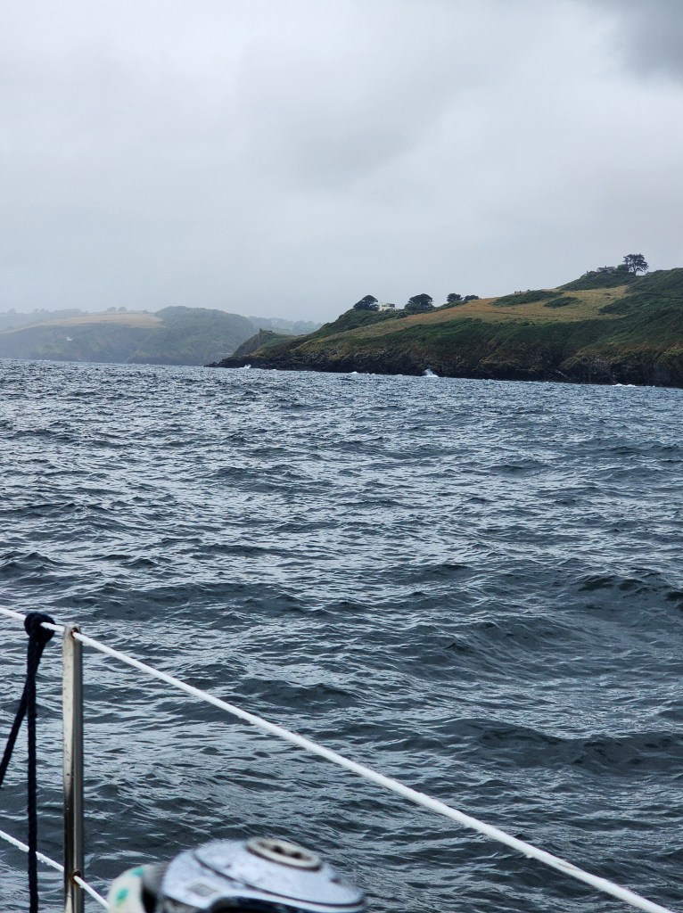 It turned out more roller coaster than washing machine so we went for it. A good sail was had all the way to Fowey, even if it was a bouncy ride. Dodman Head got a bit close, but once rounded we had a broad reach all the way in to Fowey.