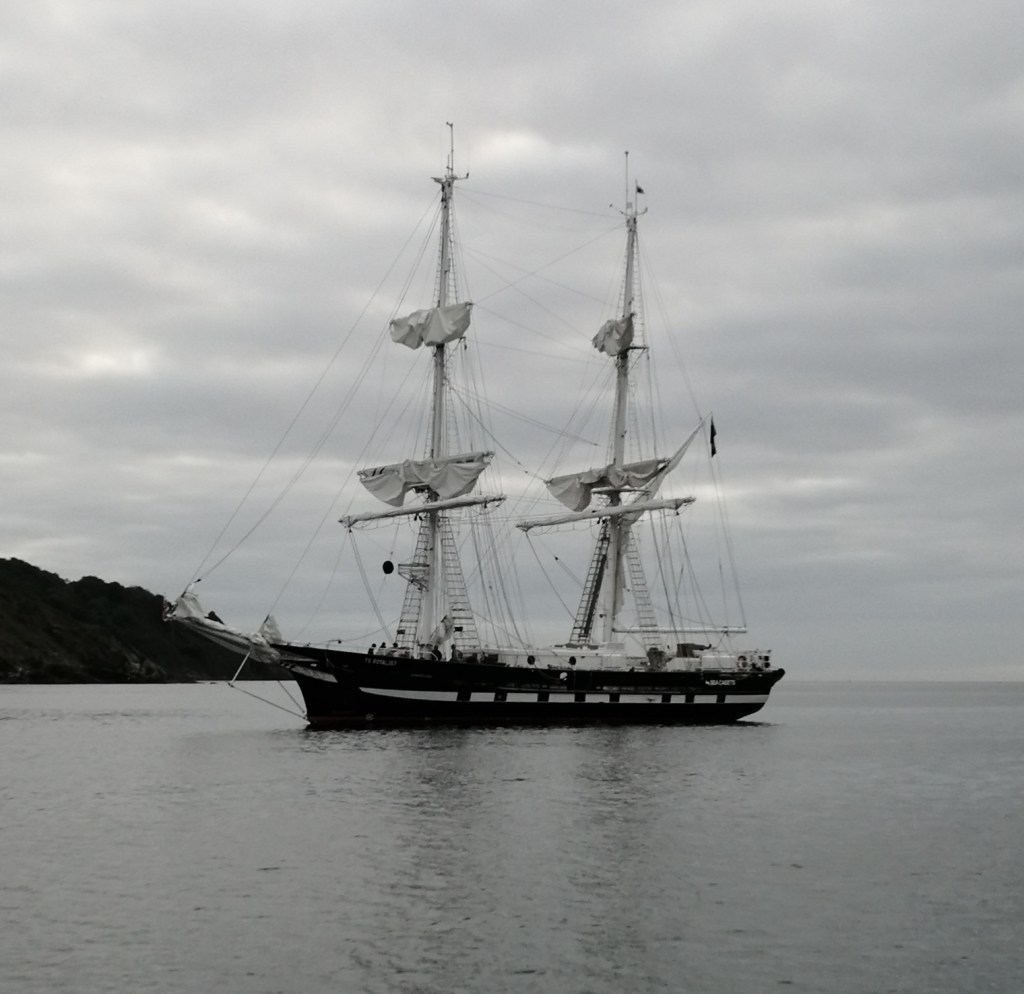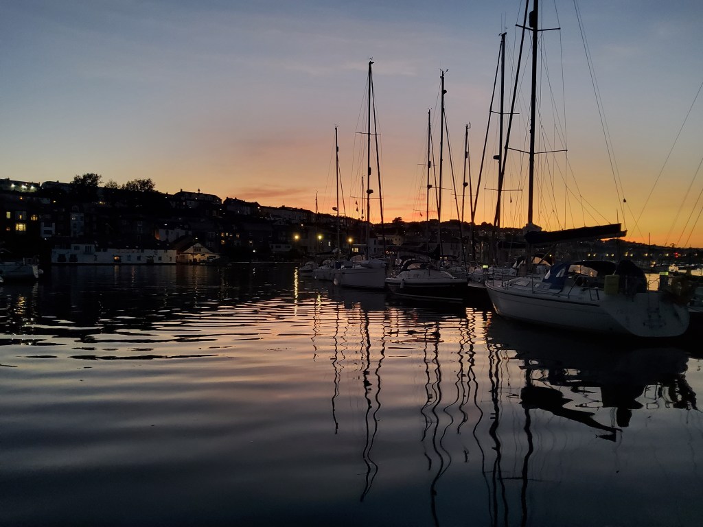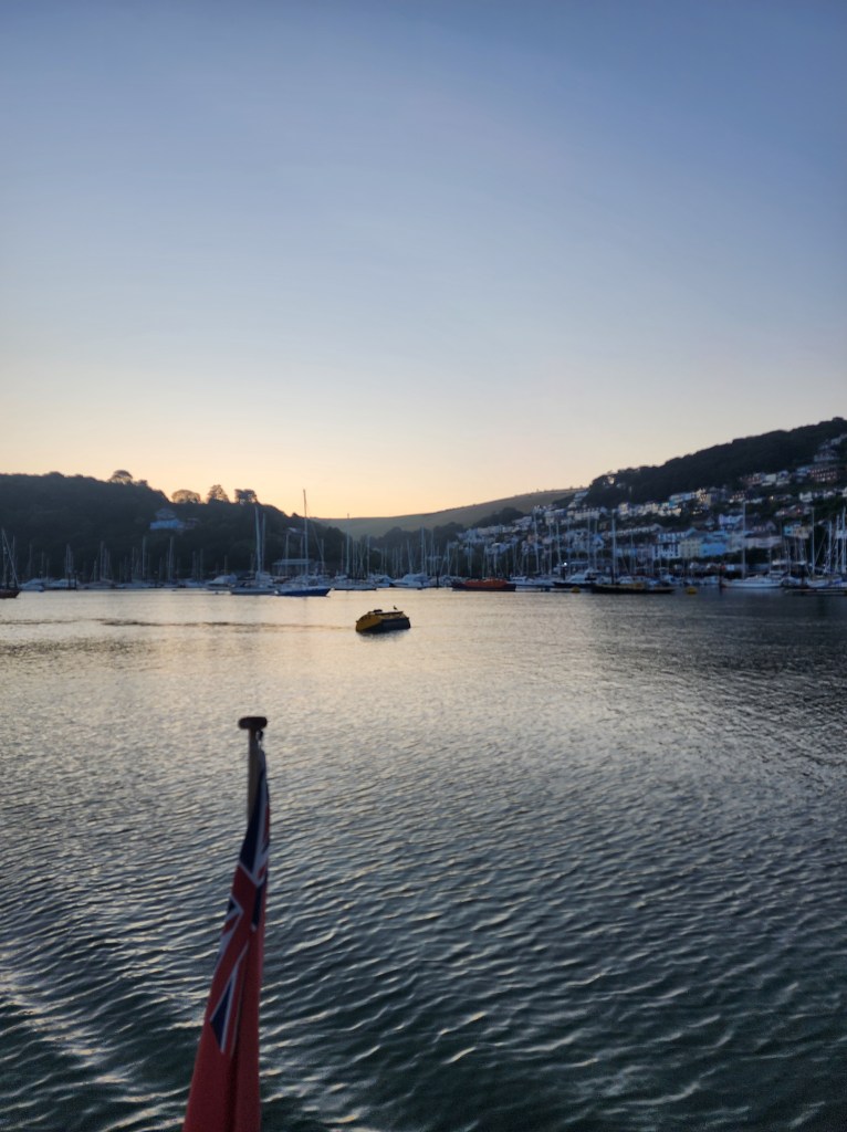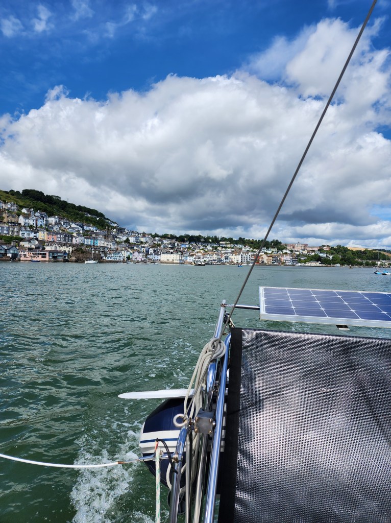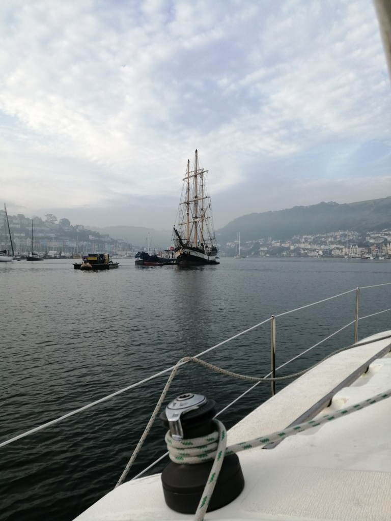 Today we’ve moved on to Dartmouth, a light-wind day on fairly flat sea’s. A dead run, in a goosewinged configuration most of the way, 19 miles berth to berth all done in just over 3 hours. We did have help from a big spring tide, mind you.