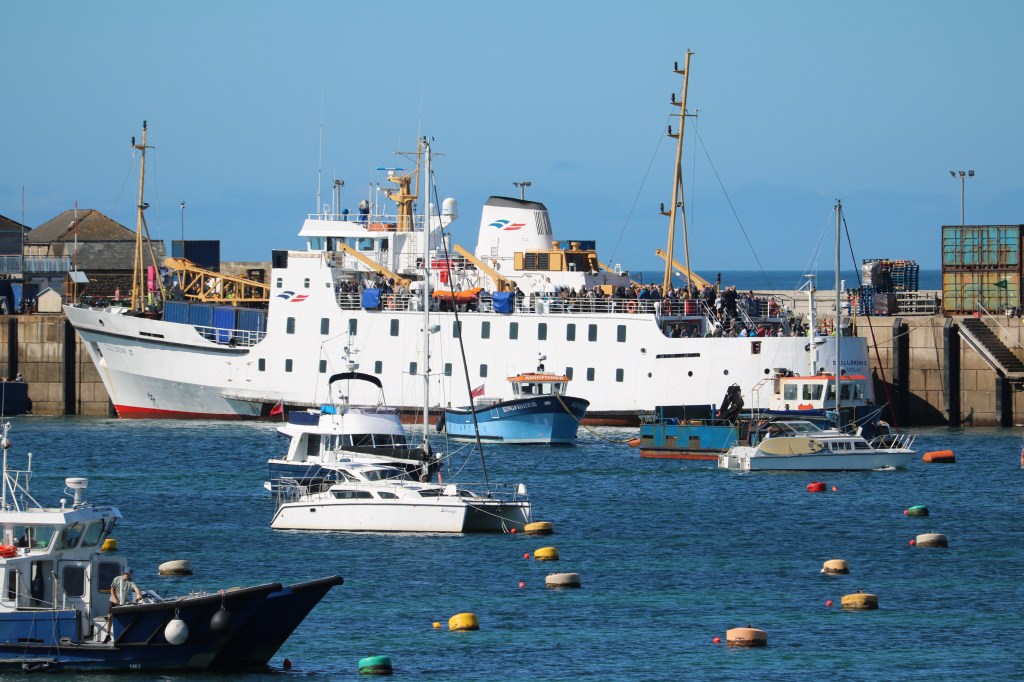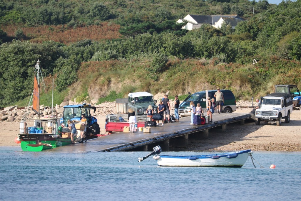 At 9:30am, the jetty on Bryher was a hive of activity, Lots of containers (of food?) being loaded onto a fishing boat, lots of ferries toing and froing.