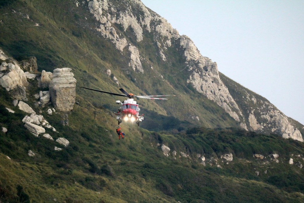 Then the excitement began. The coastguard helicopter arrived over the cliff top and dropped down close to the end of the beach. After a couple of practices it went in very close to the cliff face a lifted a casualty up before making a quick exit toward Dorchester Hospital.
