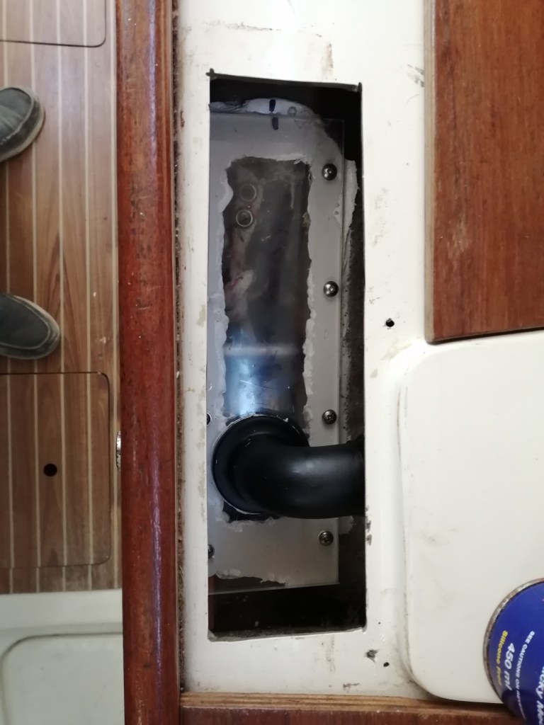 The centreboard inspection cover, which is in a storage compartment had become detached at one end, creating a gateway for water to infiltrate our bilges, gushing out each time the boat surged into a wave.