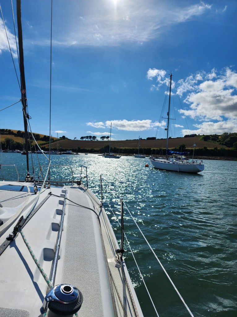 Today was bright and sunny with a light breeze from the South West. We decided to make the best of the wind in order to get further West. A relatively short hop to Newton Ferrars on the River Yealm.