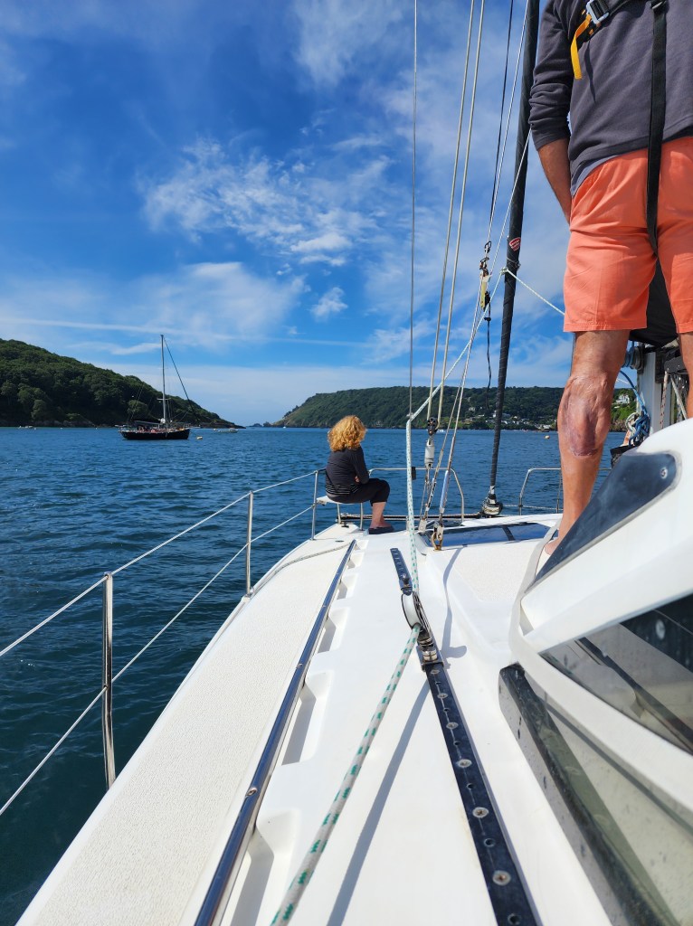 A good lie in this morning, as the trip to Salcombe required waiting for favourable tidal streams. An eleven o’clock start, bright sunshine and a good breeze. What could be better. Well, maybe the wind being a tad too strong, and the sea just a little too lumpy, and tides not quite what the book said. Still all told we didn’t do badly, only an hour longer than anticipated.