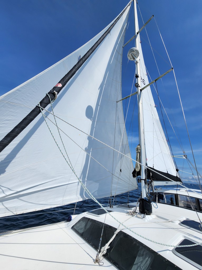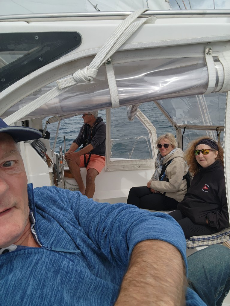 Some exciting episodes on the way included : – Engine failure, (water in the fuel), a jammed furler on the genoa and a badly frayed main halyard.
