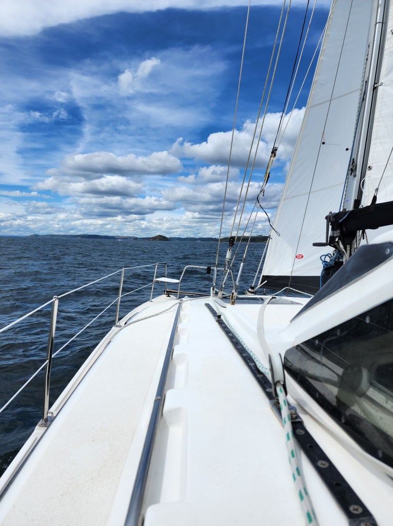 The screecher was up for the last two hours or so but it wasn’t helping much so we continued by motorsailing. At 12 o’clock we were in sight of the entrance, just needing to skirt round Cannis Rock before entering the harbour.
