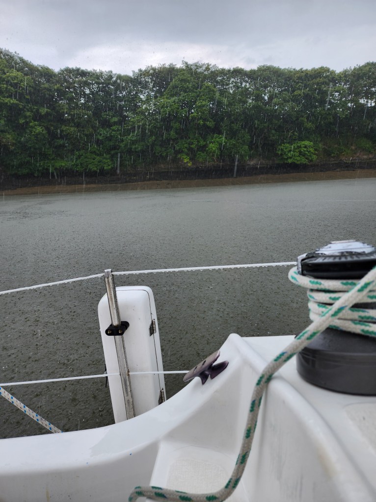 Our journey to the Dandy Hole was uneventful with next to no wind. We motored all the way, arriving to the sound of thunder, and anchoring just before it tipped down.