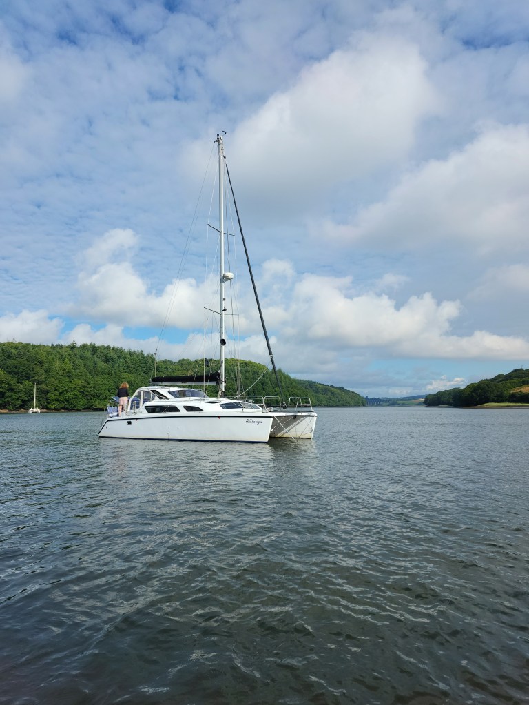 Russell and Nicola are leaving us on Sunday and we’d promised to show them another anchorage that we like, called The Dandy Hole. It’s on the river Lynher, on a wooded bend in the river, far enough away from the main marina’s that only a few boats venture this far.