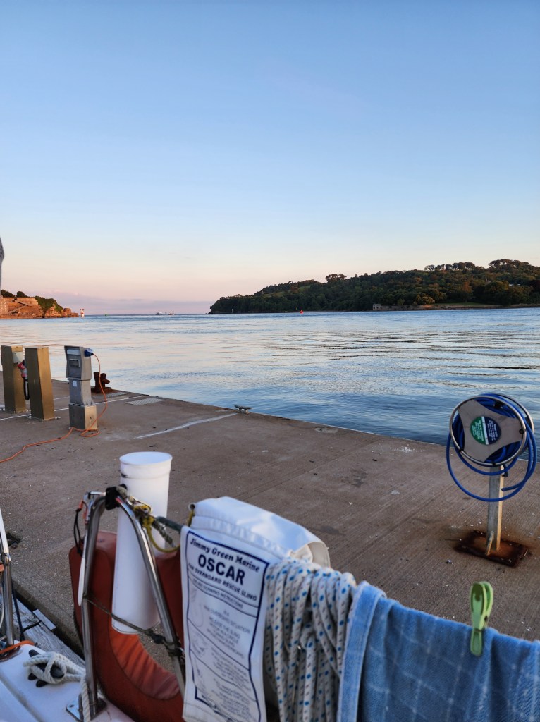 Motoring out of the estuary we were met with a gentle breeze, nice and steady, giving us about 5 to 6 knots of boat speed. Even better we were able to maintain . a single tack most of the way to our destination, leaving only the last mile to motor up the river. We even managed to bag a spot on the pontoon!