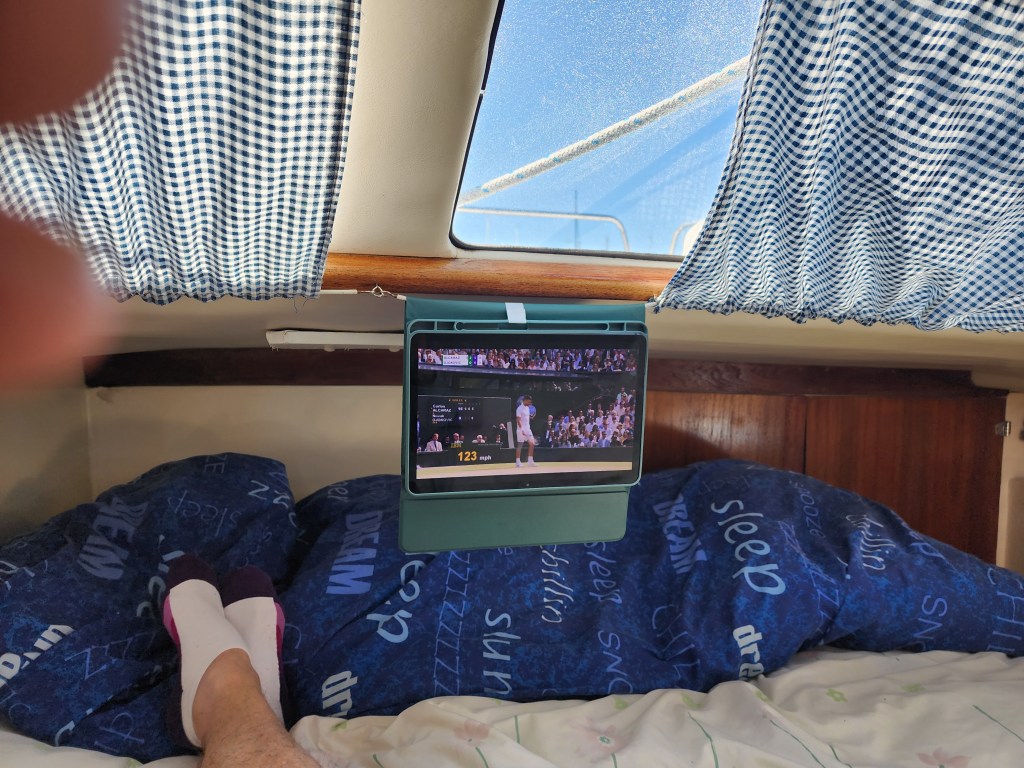 Also on the agenda was setting up for the Euro’s final, another beautiful evening apart from England losing, ooh a Half Moon, it must be Neaps!