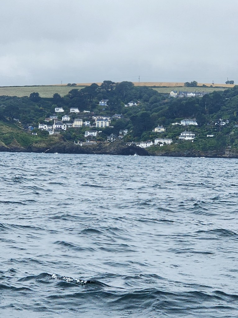 We left Fowey early on Wednesday to make our way to Falmouth, a bright morning with absolutely no wind. We motored steadily and soon had a small pod of dolphins playing round the boat. It was a brief encounter and only I managed to get one photo, the video would have been great but you have to remember to press record for that to happen.!