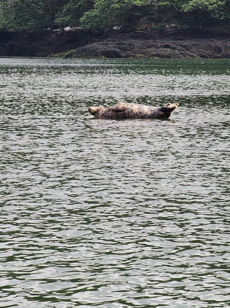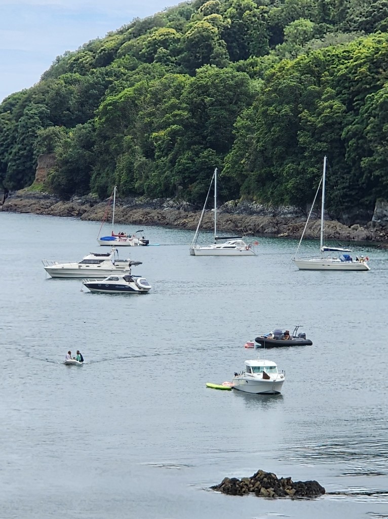 Thursday we explored some of the Fal estuary. After anchoring at Turnaware point. we visited Trelissick house and gardens, a National Trust property. Whilst tendering up to the landing pontoon, we encountered seals resting on bouys in the river.