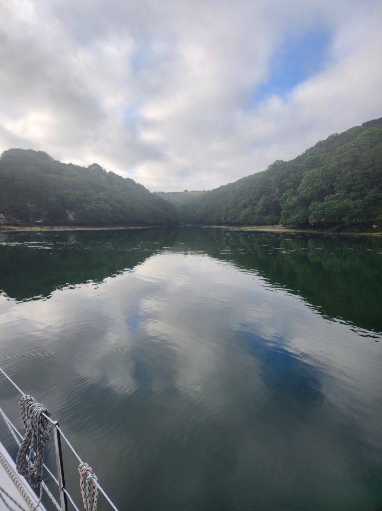 Our late arrival to Falmouth yesterday meant that we couldn’t fill up on fuel until this morning. The knock on from of this is we didn’t have enough time for the passage to The Scillies. Having fuelled up and taken the opportunity to do some shopping in Falmouth, we moved on to the Helford River, one of our favourite anchorages. Stopping near the entrance to Frenchmans Creek.