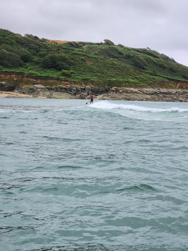 Not long after as this, we were rounding Wolf rock into Salcombe when we spotted two paddleboarders surfing on the waves surging into the estuary.