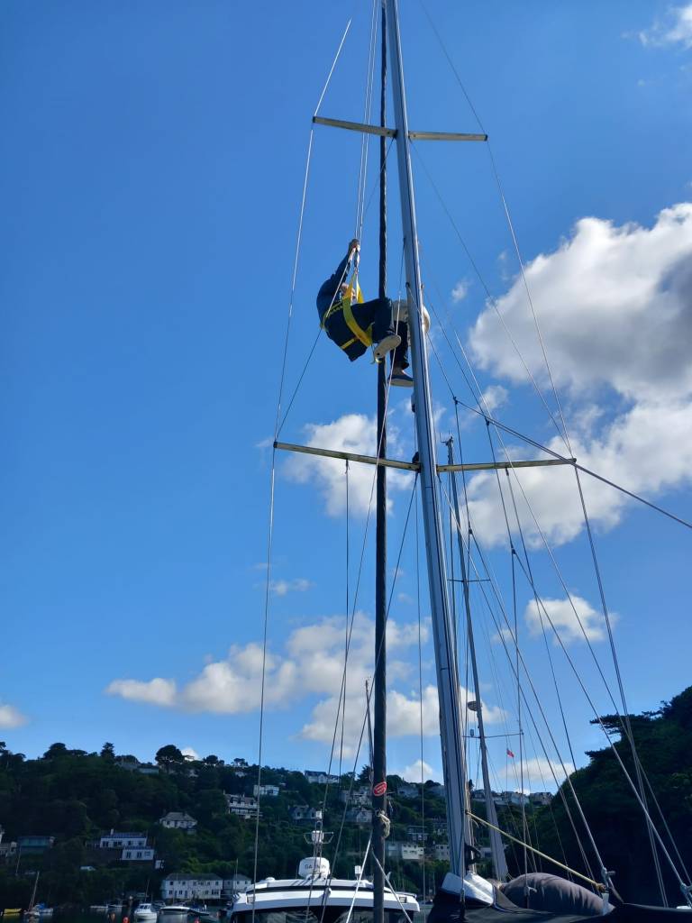 First thing on the agenda today was a trip up the mast to see if I could find the problem with the wind vane. Nothing untoward up there, connections OK., wiring ok no corrosion, so straight back down. Russell on “winch” had to go for a rest soon after. So we still have no wind instruments.