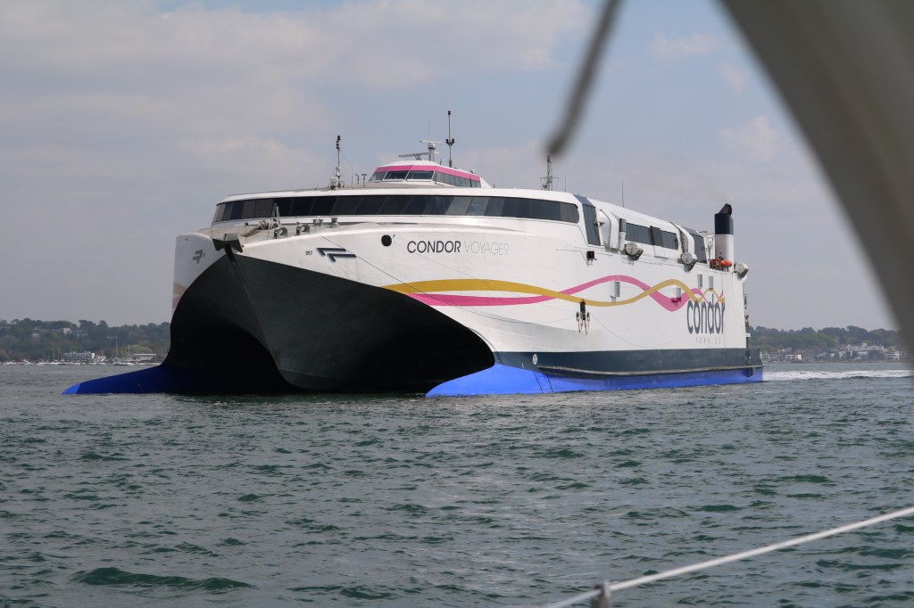 Well we left on time, having done the temporary repair to the oil seal. Glorious sunshine but cold wind to Poole entrance, and off down the fairway. Wellwishers on the beach waving enthusiastically, Mark, Desney and Wendy making our exit feel special.