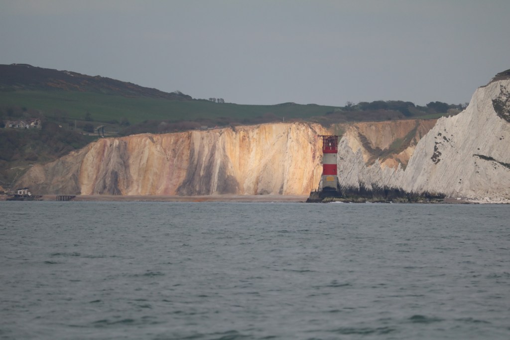 Just to keep us on our toes, the forecast NE wind was actually coming from the south West. So it was slow going all the way to the Needles channel where it finally died. It was 5pm we had been sailing 6 hours and over the transom I could still see home.