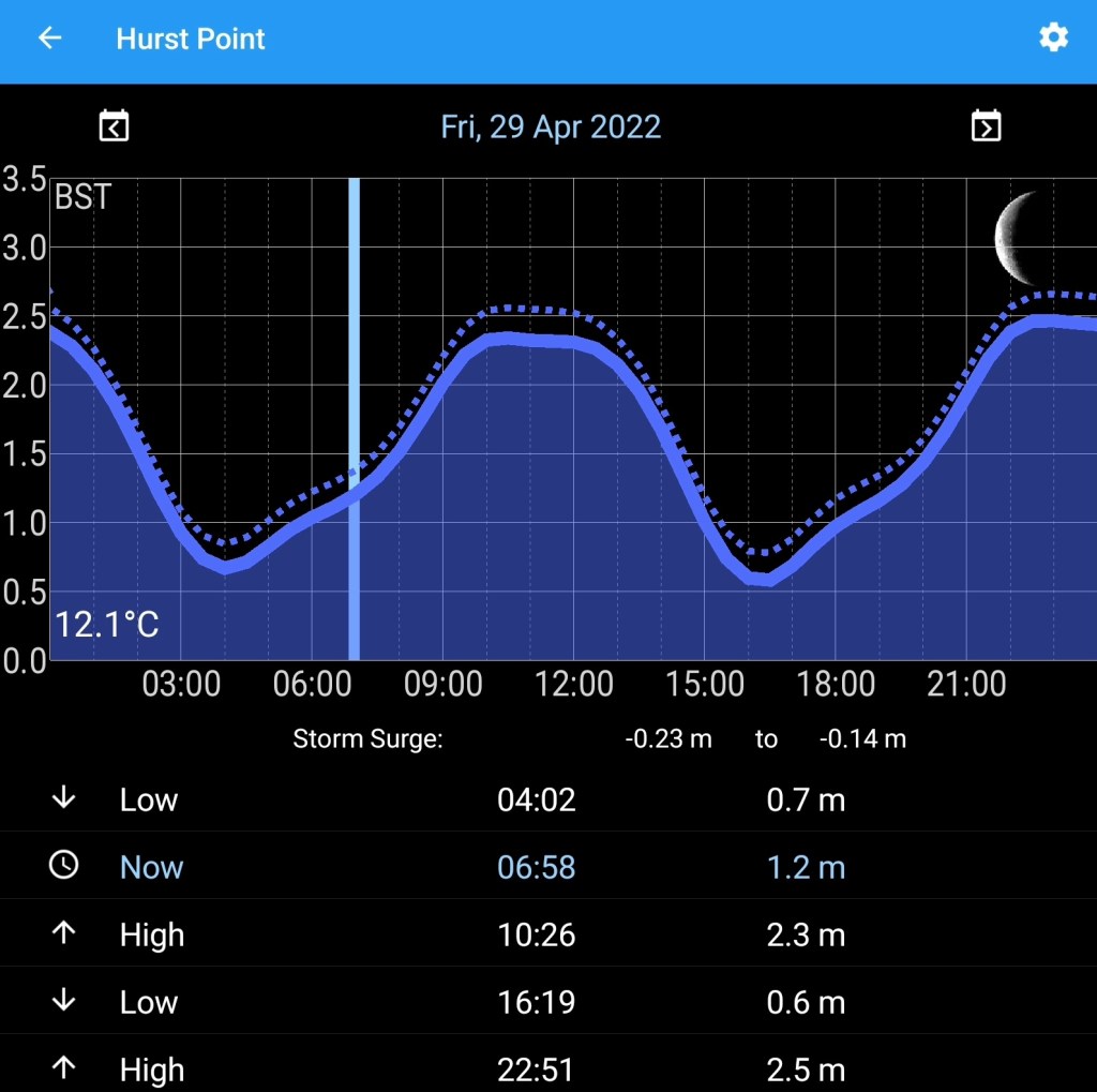 10 minutes later at Hurst Castle the gentle NE wind finally made an appearance, at 25kts. I always used to swear by Windfinder but couldn’t have got it more wrong today.