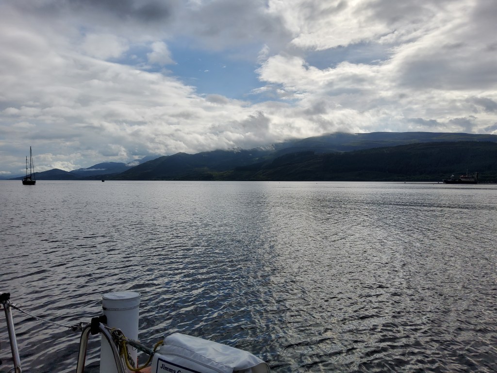 Our next destination was Oban, and once through the narrows at Corran, we decided there was enough wind to sail, it was so nice to be moving without the constant drone of the engine. The wind wasn’t kind enough to not be against us, but the tide was with us to make good progress down Loch Linnhe. Once we started weaving between the Islands, we once again motored, and reached Kerrera Marina (formally Oban Marina) at 1500 hrs. We are actually a bit ahead of schedule so are taking the water taxi over to Oban tomorrow to spend the day.