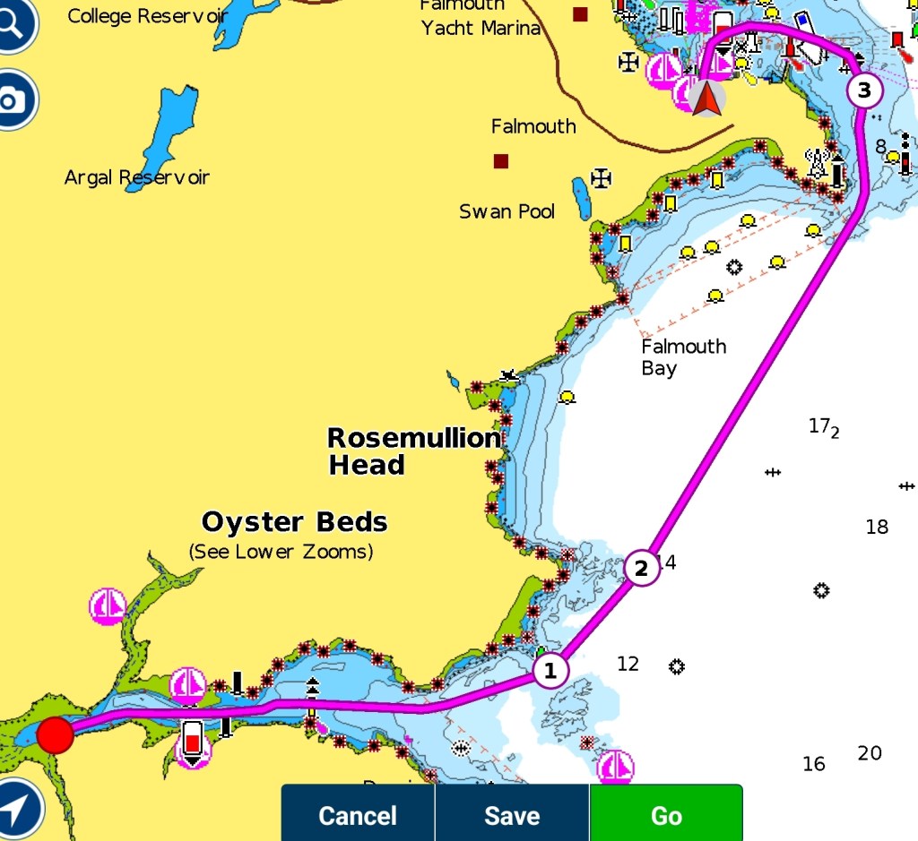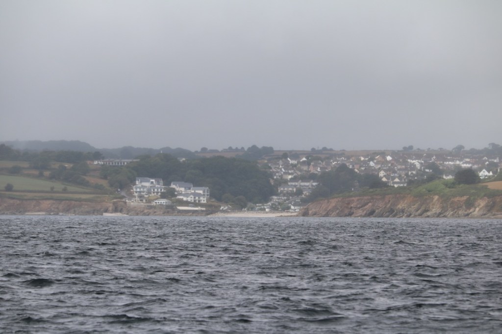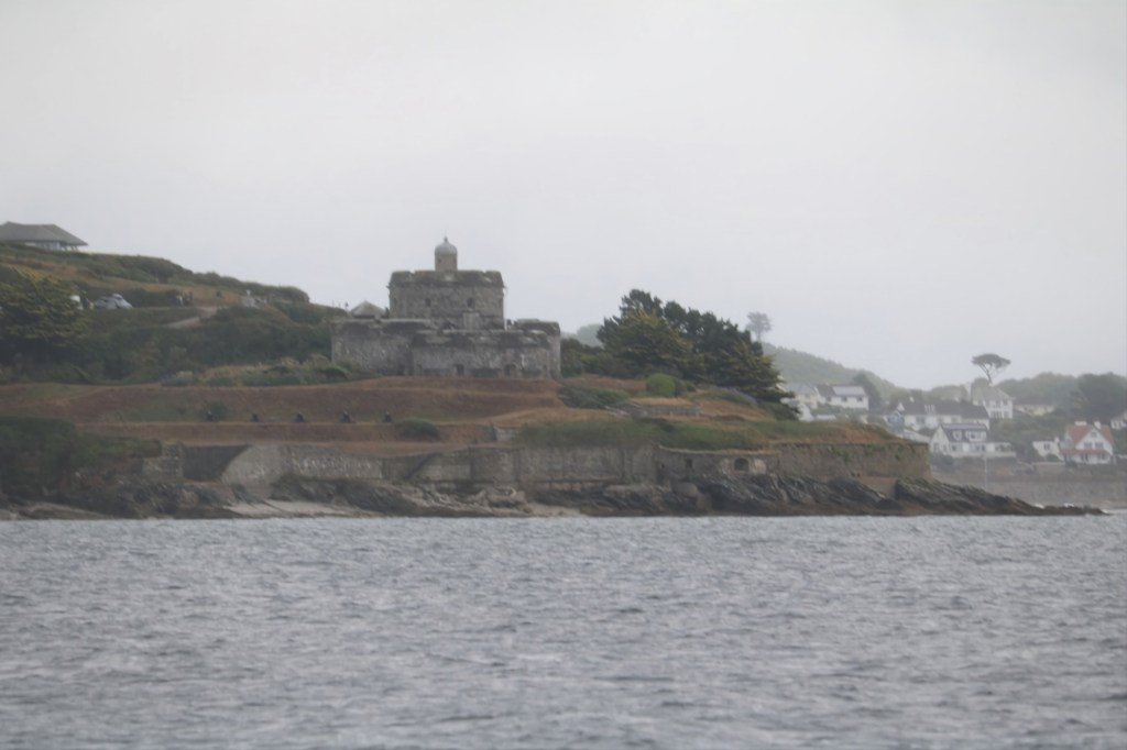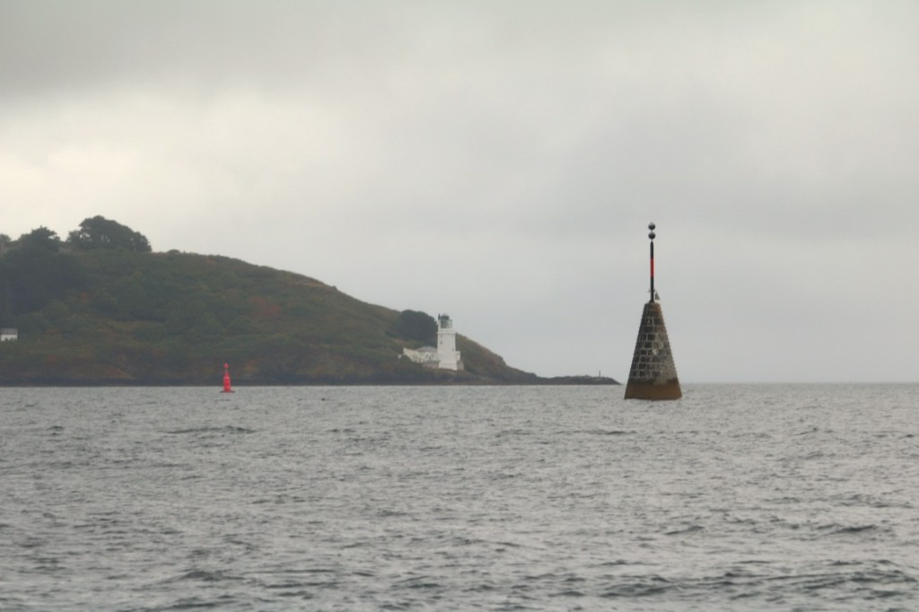 A grey drizzling morning, everything damp. Port Pendennis marina was full but put us on a waiting list to get in, we were second in line for a place so a good chance of a place as people left. We started off and made our way toward the entrance of the river the drizzle turning to mist and then to fog. Always a nightmare for boats.