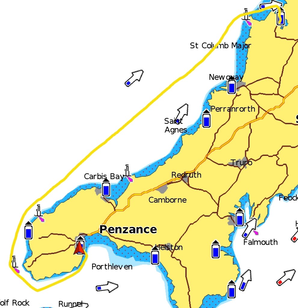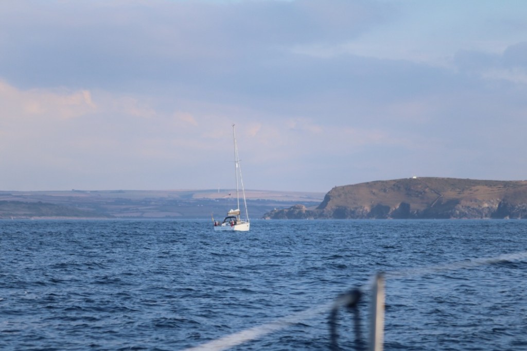 So we settled into our now familiar 1 hour on, 1 hour off routine, all the way to Cape Cornwall where we could finally use the sails. The speed went up giving us a boost towards Longships lighthouse. Rounding longships the wind died and we were back to motoring, the tide bringing us uncomfortably towards the rocks.