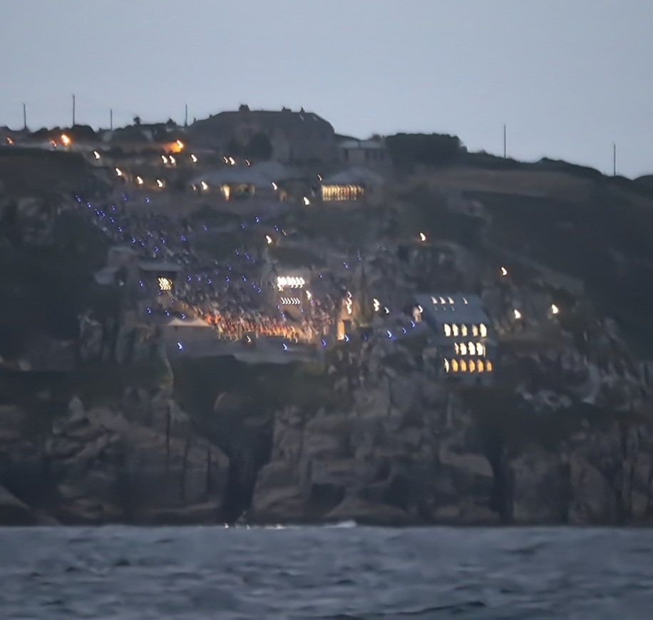 We were now heading East and as darkness closed in we could see a performance at the Minack Open air theatre up on the cliffs. Pot bouys, in the darkness now became Pot Luck. It’s a long time since we had night passaged, and it was a challenge remembering the different lights and what they were!