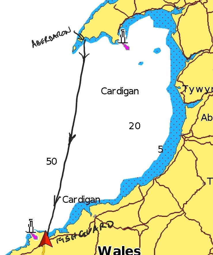 To go to Milford Haven from Fishguard safely you have to have good weather and get the timing of the tides right. We were given this information by the harbourmaster who gave us a detailed route map describing the whole journey and just about every rock to avoid. It seems that you should leave at HW Fishguard, and maintain a boatspeed of 5knts all the way. Tomorrow HW is 0630, which is not too early, and the weather is just right.