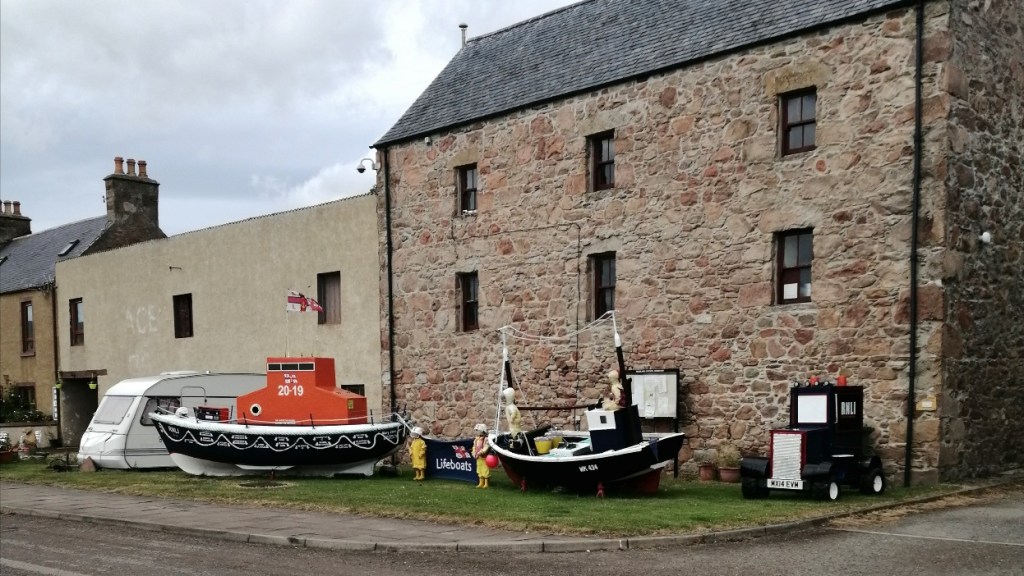 The nearest lifeboat to Helmsdale is Wick over an hours rescue time away but the support here is strong with a great display outside the Harbour offices.