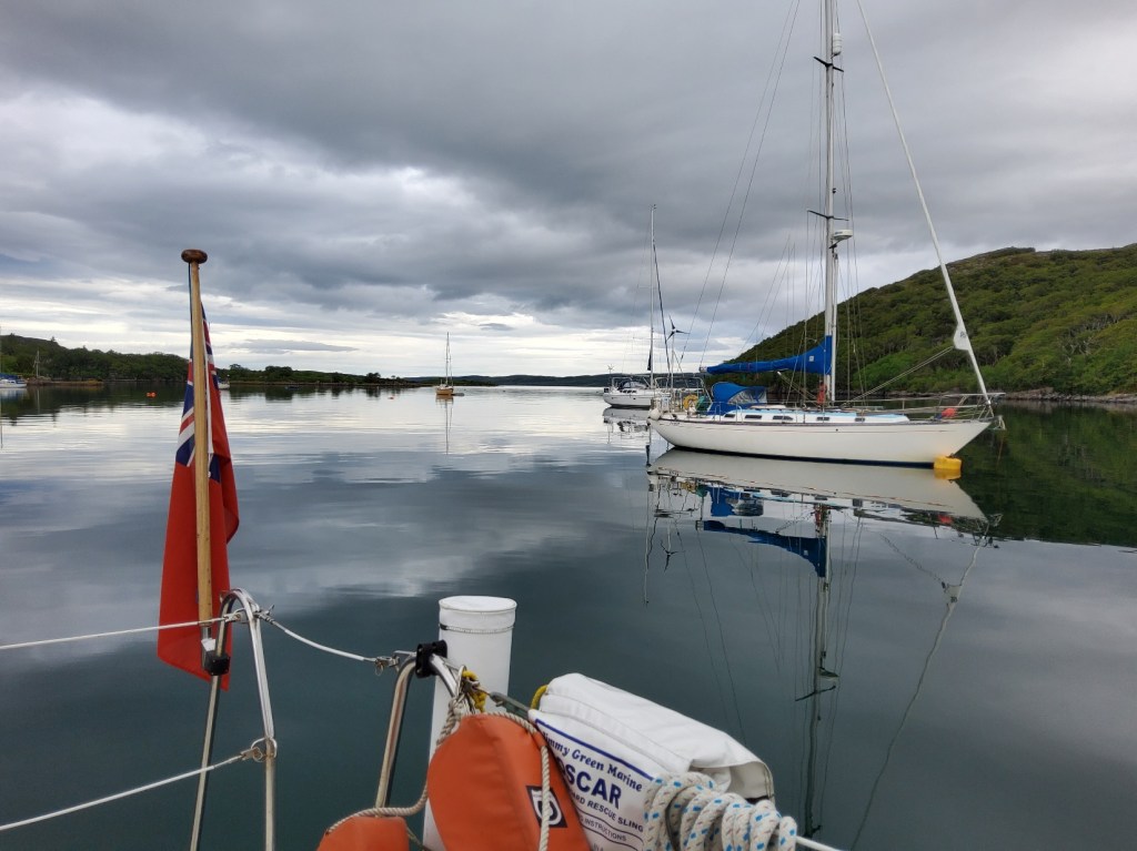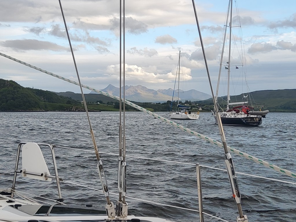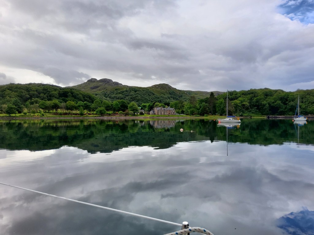 Gairloch was our next destination, a five hour journey with a decent wind to carry us along. We stopped at the rather rundown pontoons in the Harbour, and took our Calor gas bottle for a walk to the local garage for an exchange. We put our mooring fee in the honesty box and went off to find an anchorage in Loch Shieldaig. A beautiful spot and… QUIET. There was again no internet nor phone signals, so almost as soon as we’d finished dinner we went to bed. We both slept pretty much 12 hours solid!
