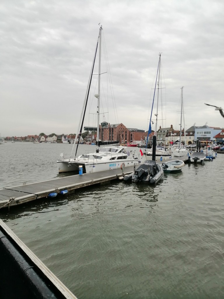 After very heavy rain during the night, it was a bright and sunny morning. In the marina there was hardly a breath of wind but the forecast showed SE F6/7. That seemed a bit strong to me, having been caught out so many times this trip, but it was a following wind and we were heading into more sheltered waters, we made the decision to go.