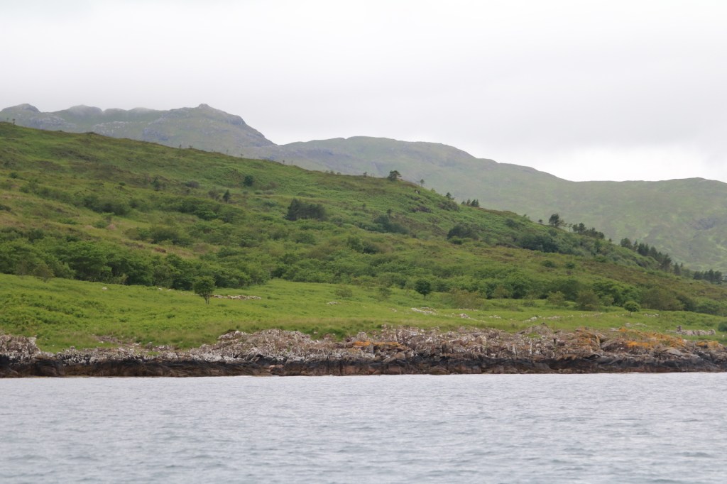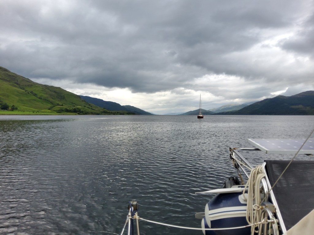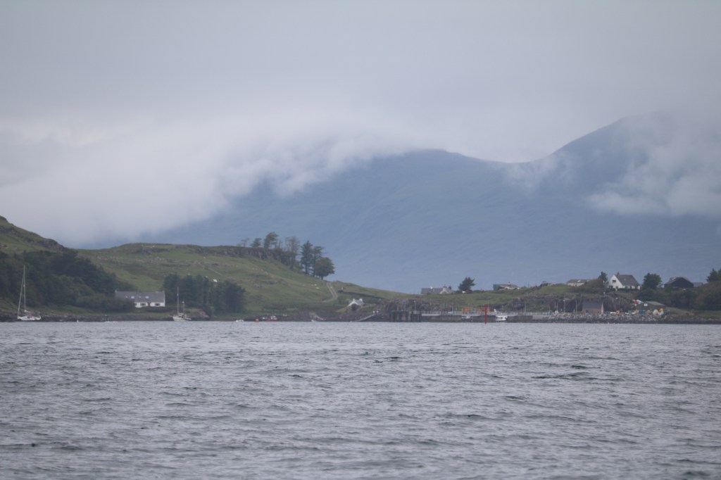 We were rewarded with a great sail, even though the wind did top 32 knots we had only raised the genoa and were still achieving 9 knots boat speed. We arrived at Kyle Rhea Narrows exactly on slack water so there were no dramatics with overfalls or eddies as we passed on into Loch Alsh. There were a few seals around in the narrows but all a bit camera shy. As we had passed under Skye Road Bridge, there was a completely different weather system. Literally as we passed under the bridge the wind went from 30 knots to 4 or 5 and we crawled along heading north up the inner sound, bound for Loch Carron and then around into Plockton Harbour.