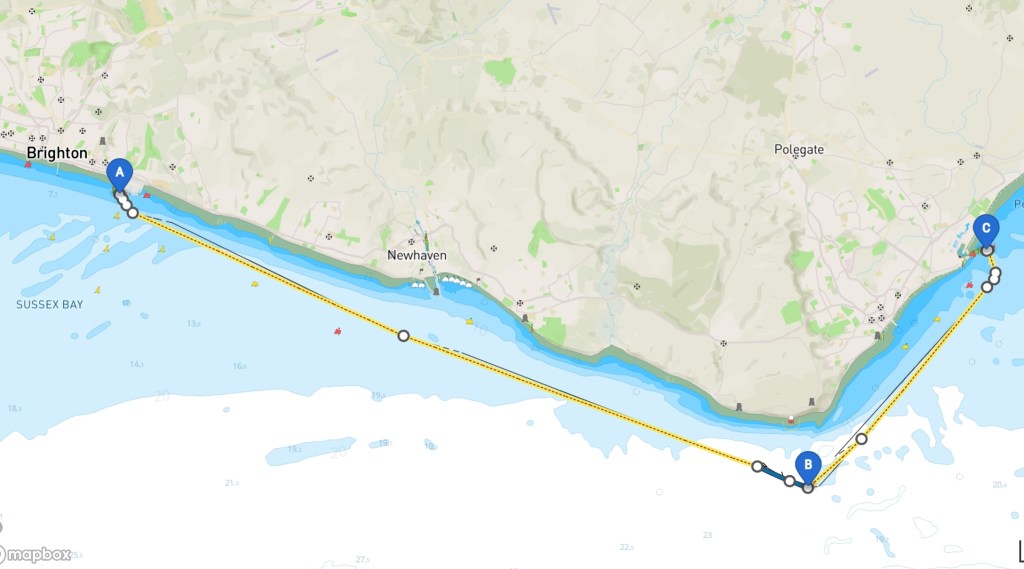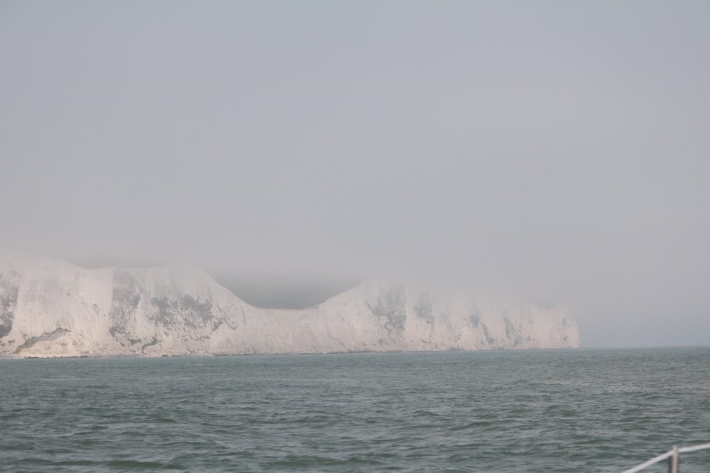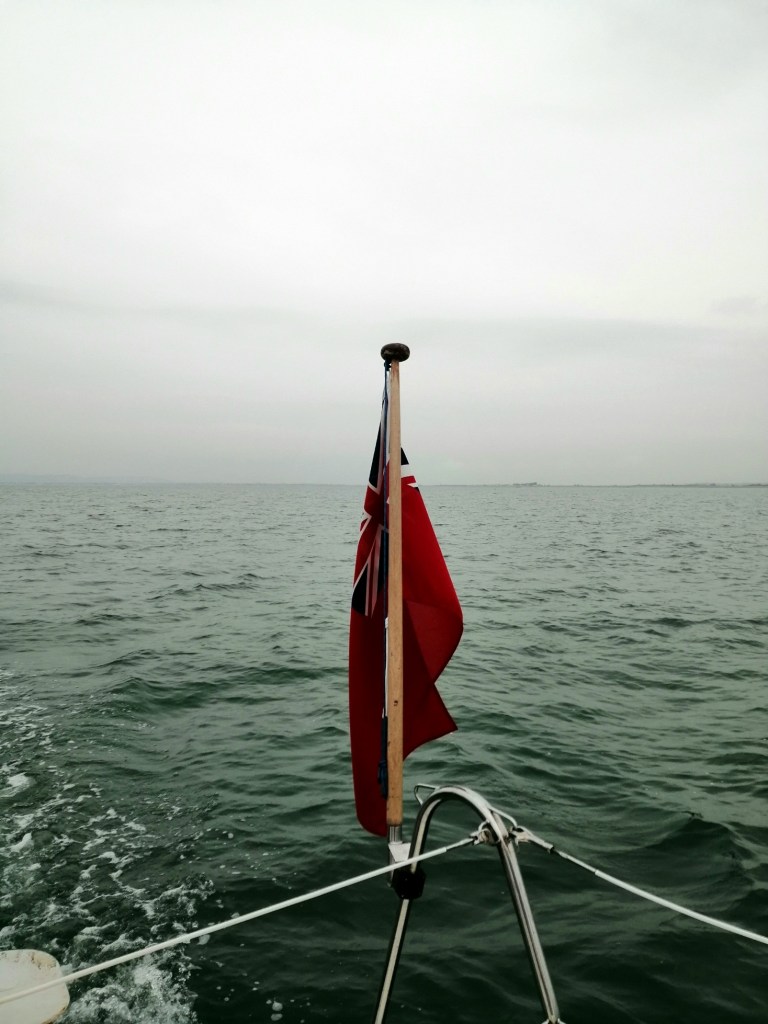 We awoke this morning to fog. You are taught in your day skipper and yachtmaster courses not to set out in fog, fortunately by the time we were ready to leave the visibility was about 2 miles, so off we went on a dead flat sea with no wind. There were still patches of fog about but mostly just low cloud rolling off the hillsides. Three miles up the coast we had a milestone moment when we accumulated 1000 miles travelled so far.