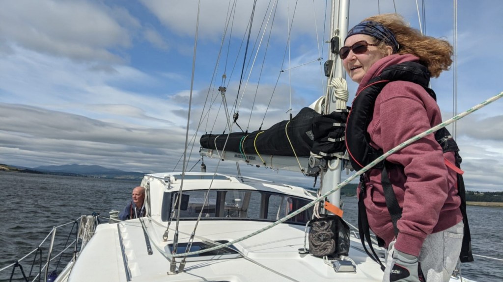 With our guests Russell and Nicola as crew things were a lot easier to manage as I could stay at the helm while the others dealt with the ropes.. The short hop to the canal entrance took all of 15 mins and then we had to hold station for another 15 mins while the lock was made ready.